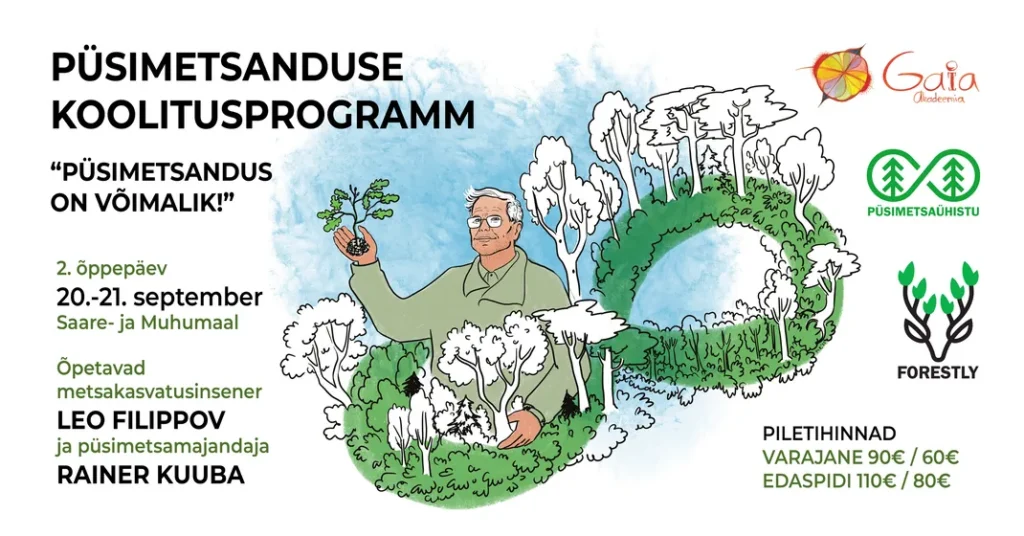 “Püsimetsandus on võimalik!” on teine õppepäev pikemast püsimetsanduse kursusest, mida korraldavad Eesti Püsimetsaühistu, Forestly ja Gaia Akadeemia.: